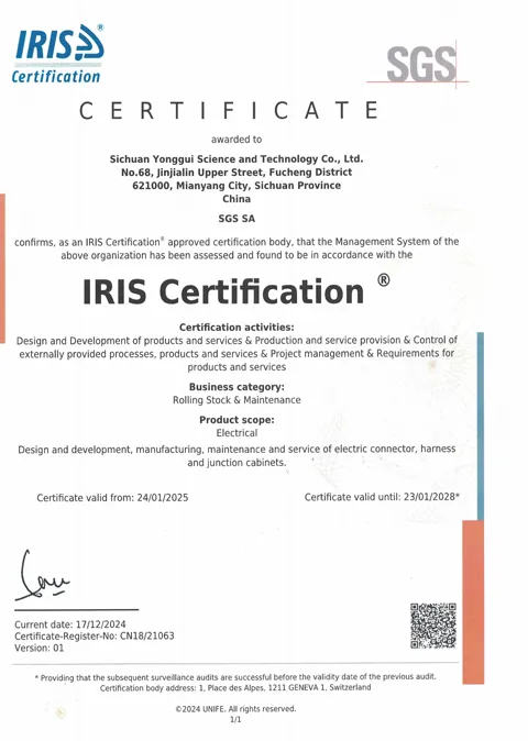 The company’s products are distributed across three major sectors: new energy and vehicles (58%), railway and industrial (36%), and specialized markets (6%), supporting safe, stable, and efficient operations in each field. Yonggui holds 726 national patents and is certified to ISO 9001, ISO/TS 22163, CRCC, ETL, UL, and IATF 16949 standards.